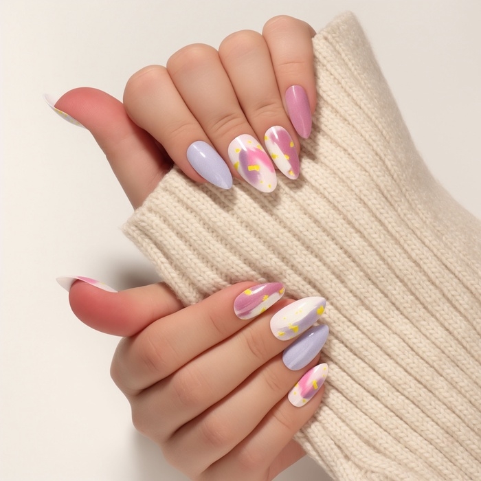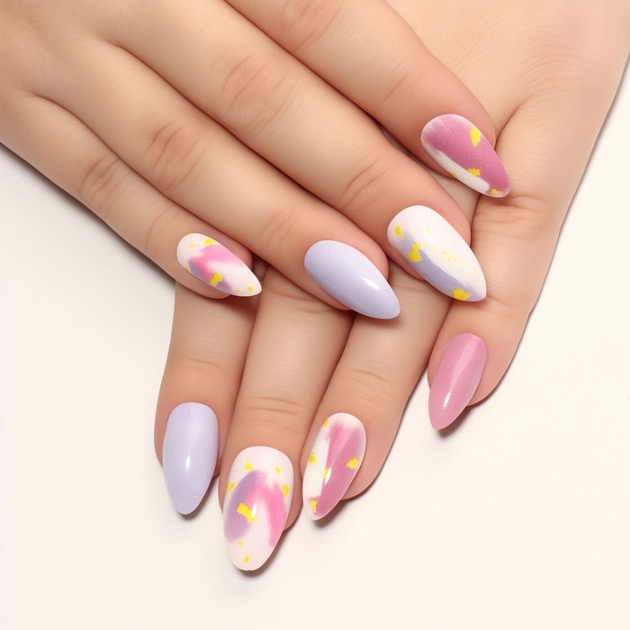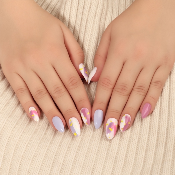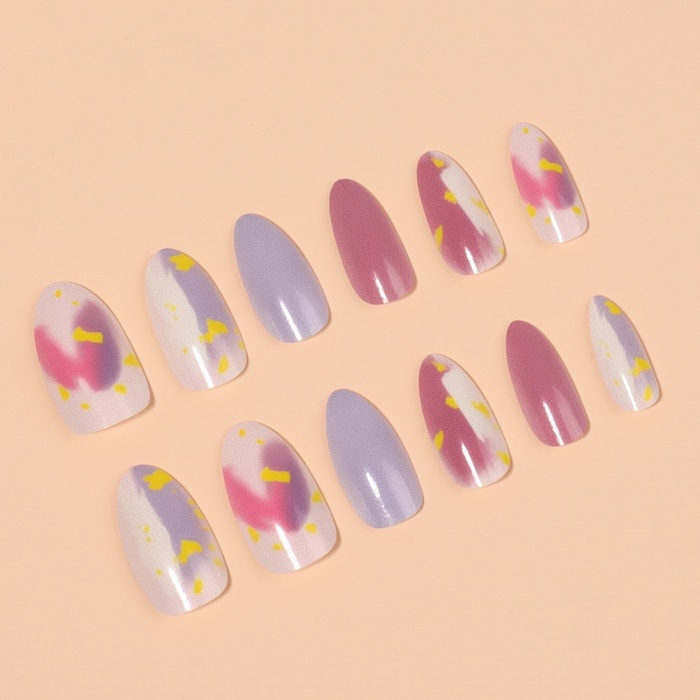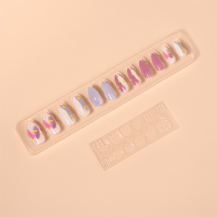 Накладные ногти «Пятнышки», 12 шт, с клеевыми пластинами, форма миндаль, разноцветные