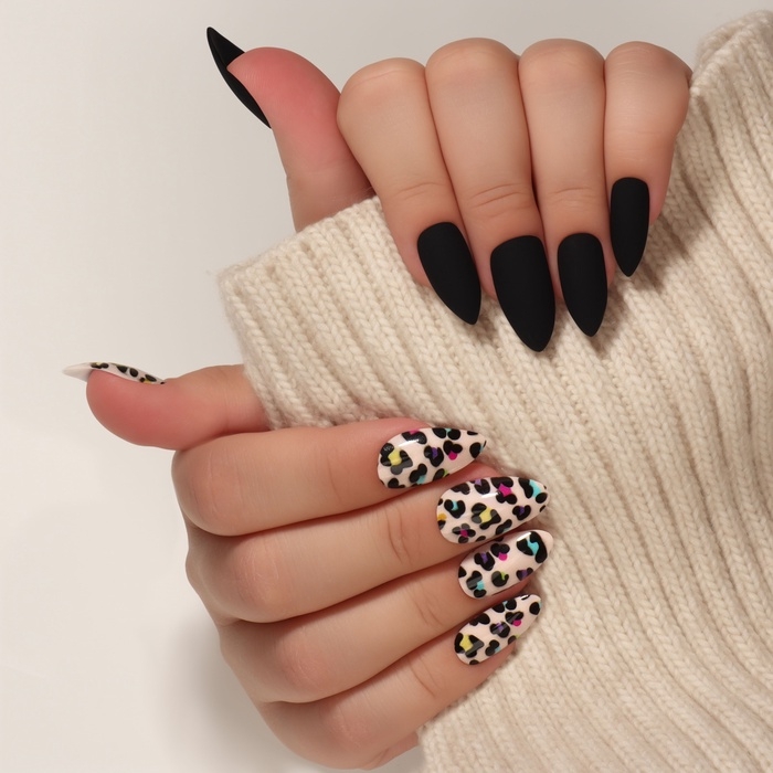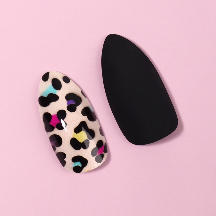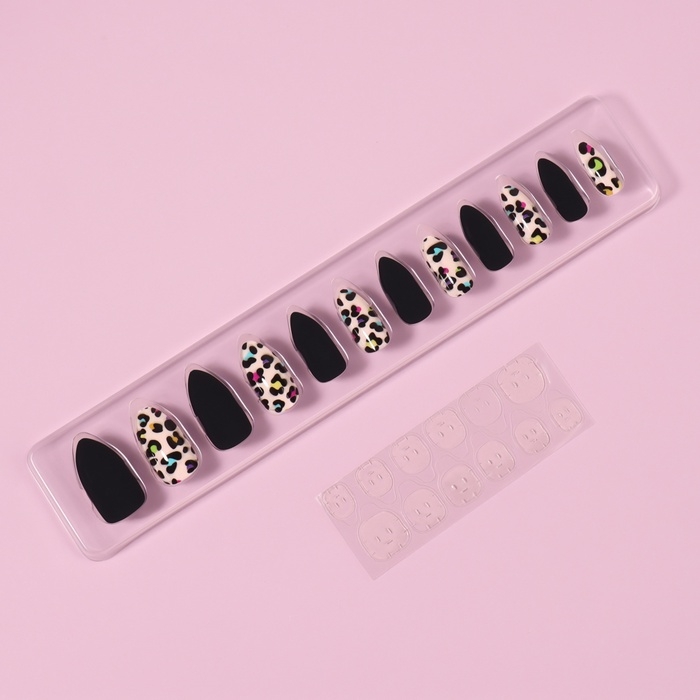 Накладные ногти «Лео», 12 шт, с клеевыми пластинами, форма миндаль, чёрные, бежевые