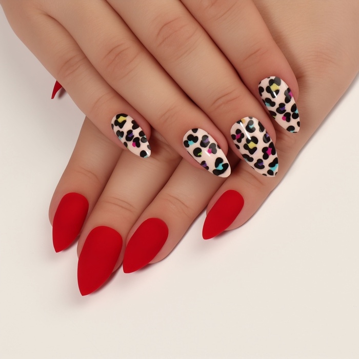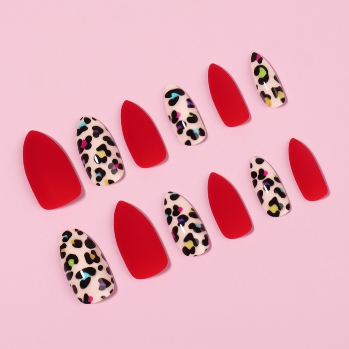 Накладные ногти «Лео», 12 шт, с клеевыми пластинами, форма миндаль, красные, бежевые