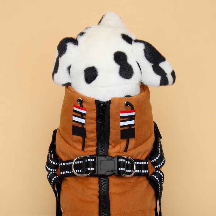 Встроенная шлейка: Уникальная особенность данной куртки – встроенная шлейка, которая позволяет удобно крепить поводок без необходимости одевать дополнительный аксессуар. Это особенно удобно для активных прогулок, обеспечивая быстрый доступ к шлейке.