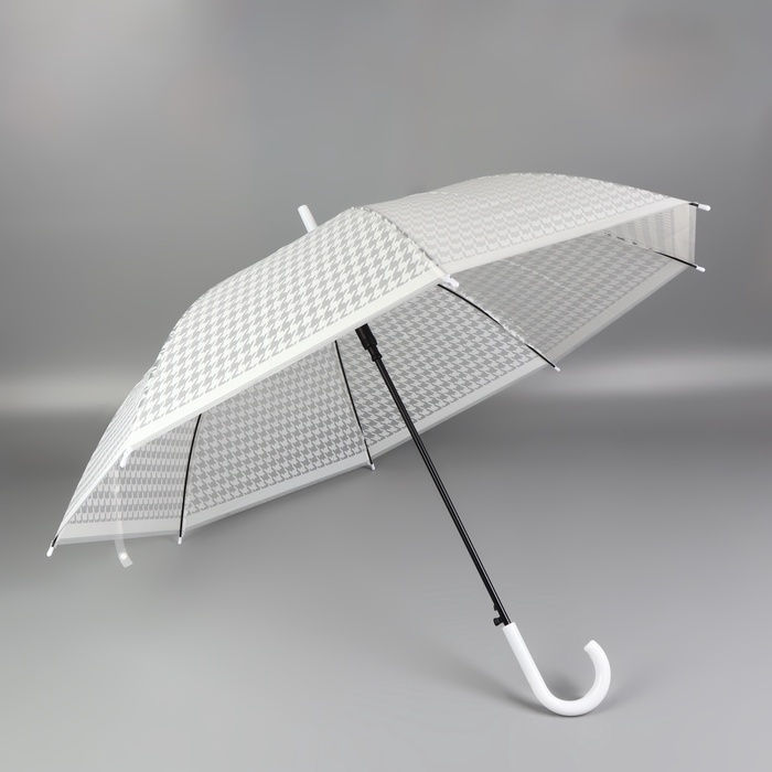 Зонт - трость полуавтоматический, 8 спиц, R = 51/58 см, D = 116 см, цвет белый