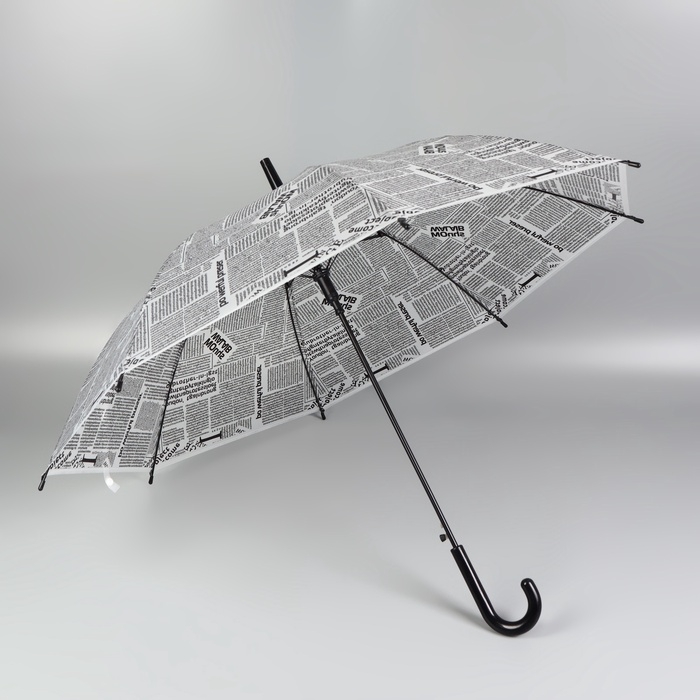 Зонт - трость полуавтоматический «Газета», 8 спиц, R = 47/54 см, D = 108 см, цвет серый