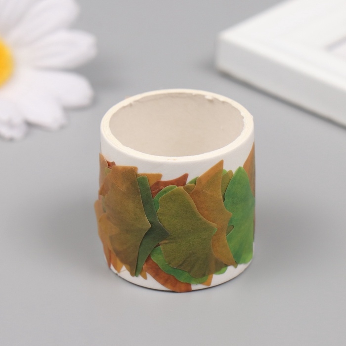 Клейкая лента бумага "Листья гинкго" 50 картинок 3,5х3,5х3.7 см