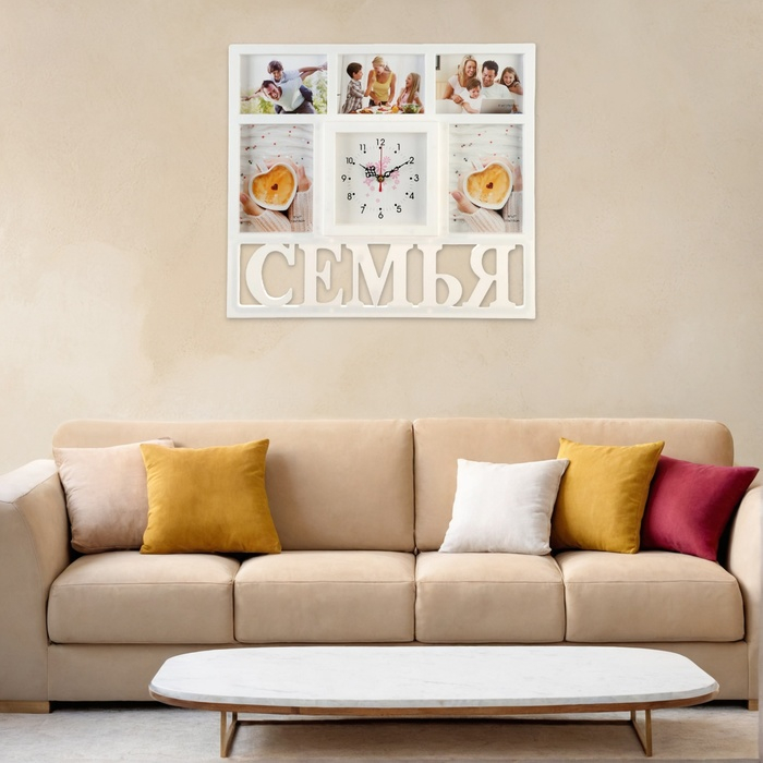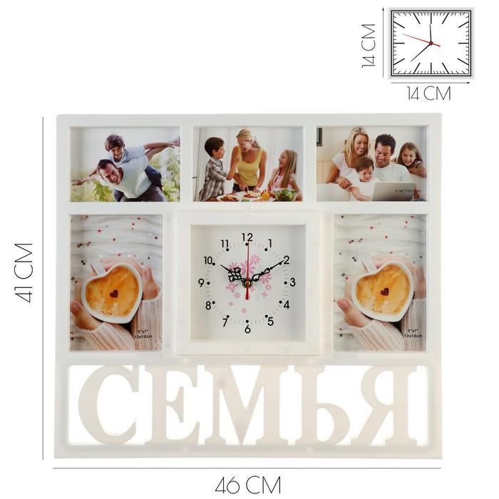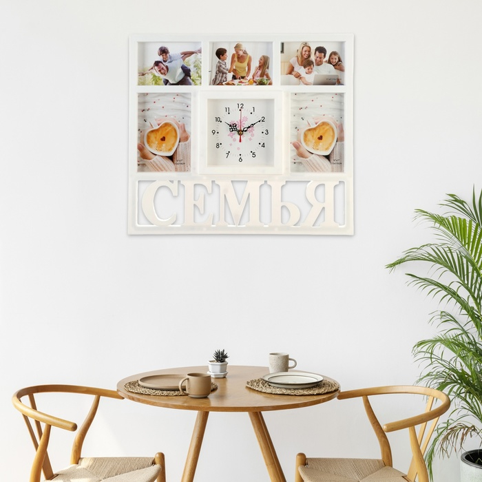 Часы настенные интерьерные, фоторамка - коллаж "Семья", бесшумные, 41 х 46 см, АА