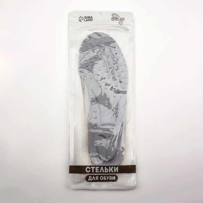 Стельки для обуви, утеплённые, фольгированные, универсальные, р-р RU до 46 (р-р Пр-ля до 45), 29 см, пара, цвет бежевый/серый