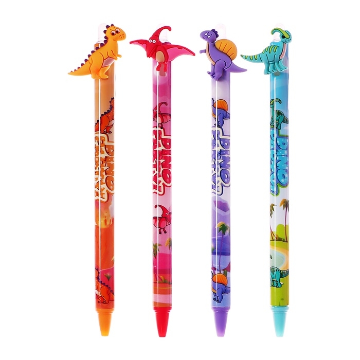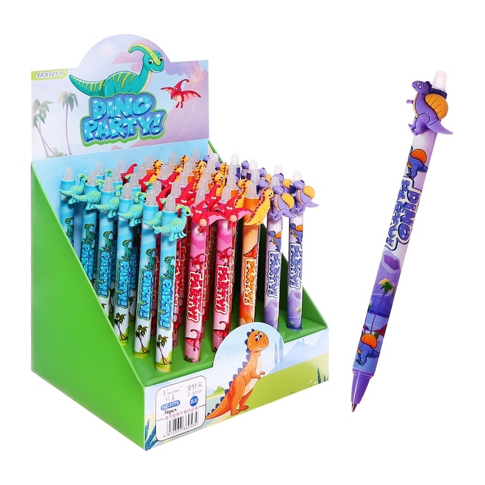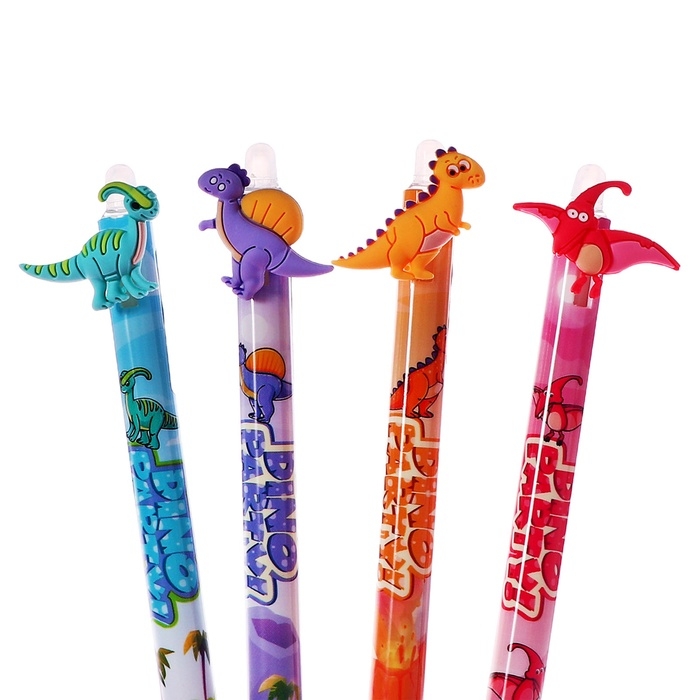 Ручка гелевая 0.5 мм, со стираемыми чернилами, синяя, штрихкод на штуке, МИКС Динозавры
