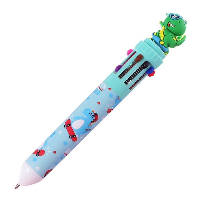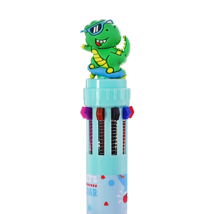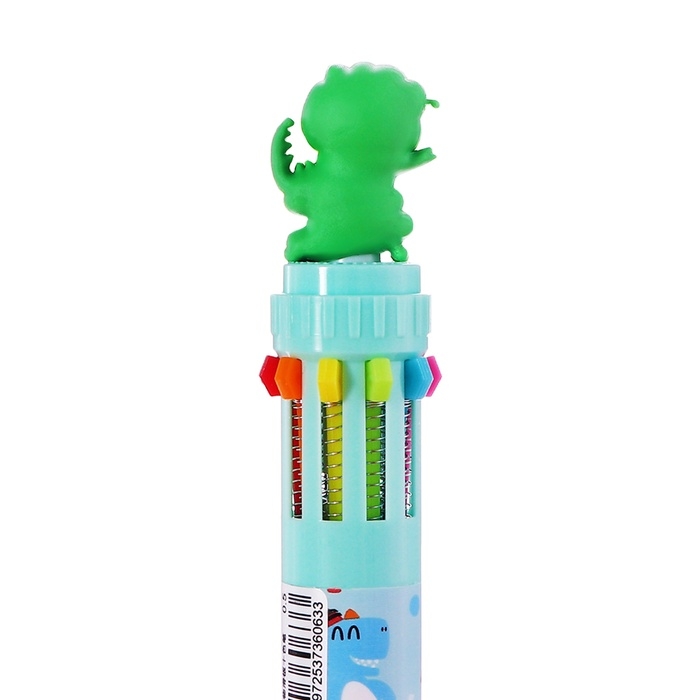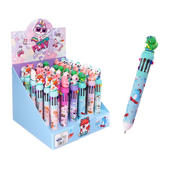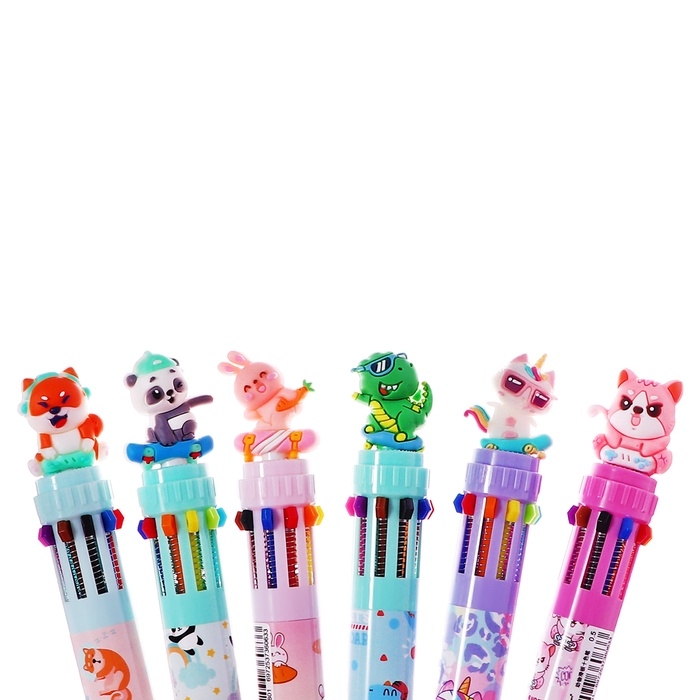 Ручка шариковая автоматическая, 10-ти цветная, штрихкод на штуке, МИКС Зверята