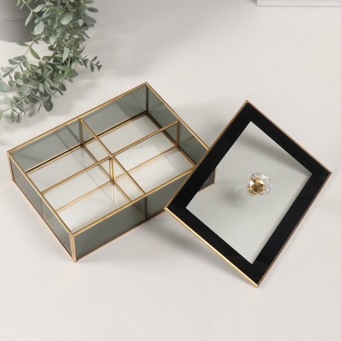 Шкатулка стекло с металлическим каркасом "Лаконичность" прозрачный черный 16х22х9 см