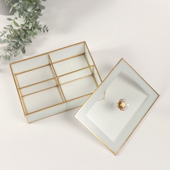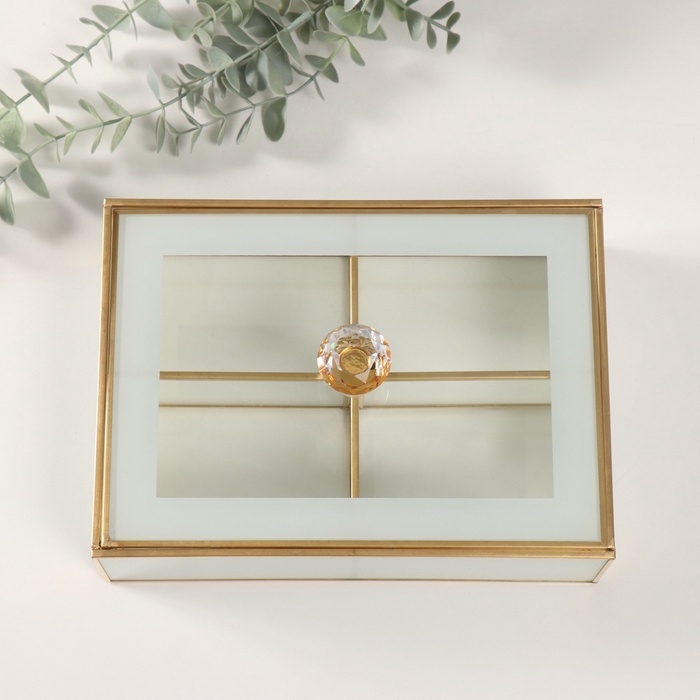 Шкатулка стекло с металлическим каркасом "Лаконичность" прозрачный белый 16х22х9 см