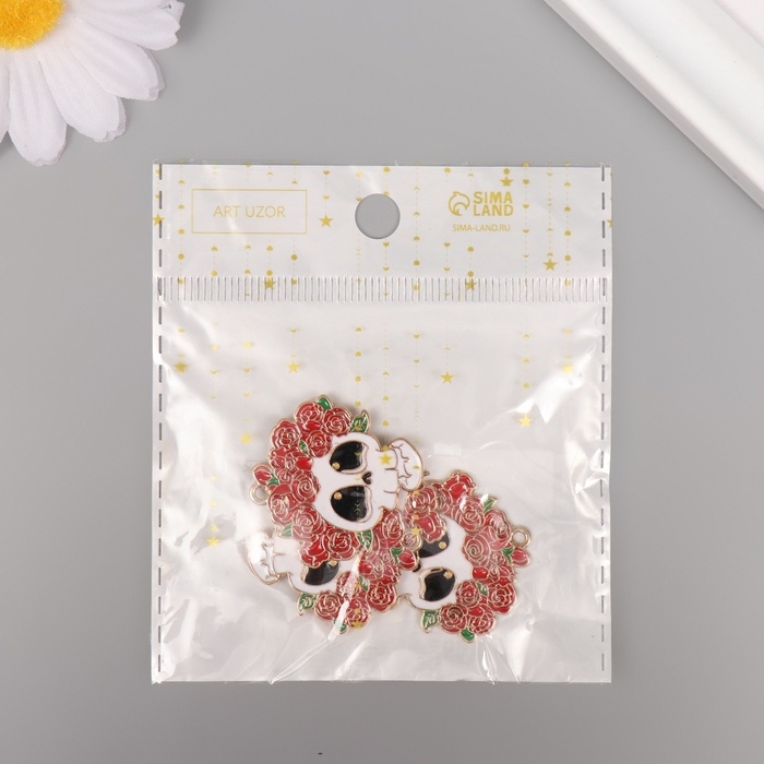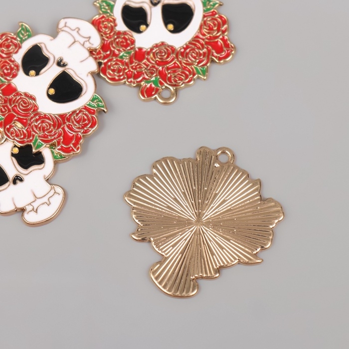 Декор для творчества металл, эмаль "Череп в цветочном венке" 3,1х3 см