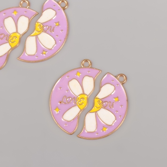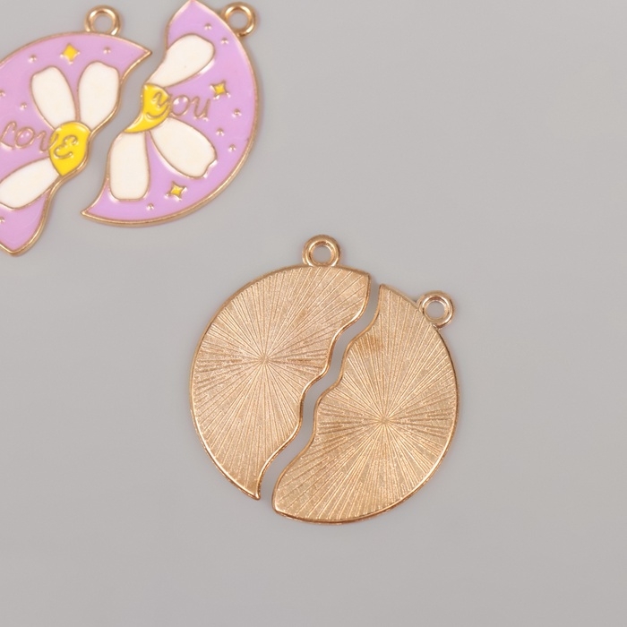 Декор для творчества металл, эмаль "Ромашка - половинки" набор 2 шт 2,8х2,7 см