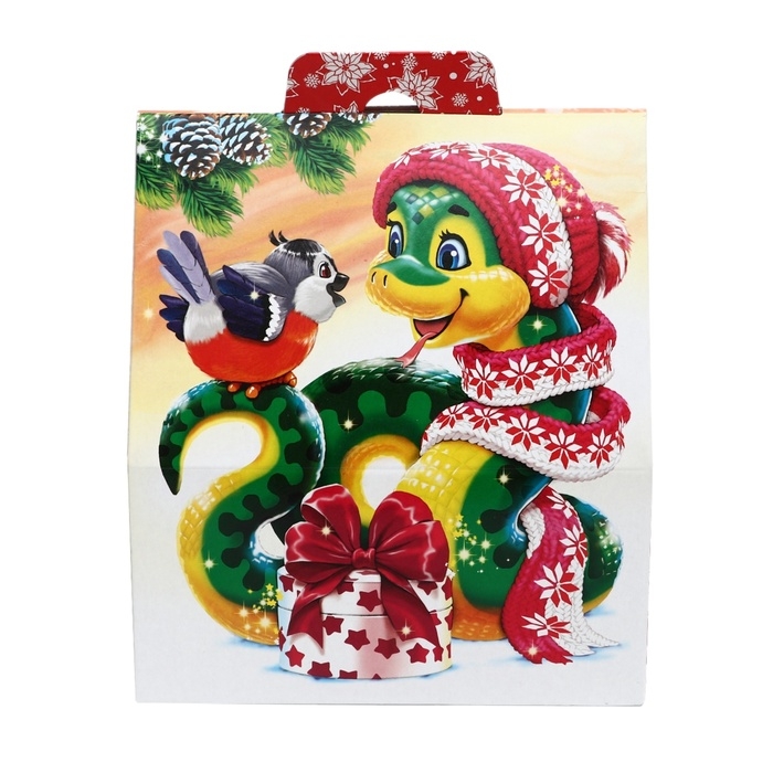Коробка с изображением змеи не только символизирует Новый год, но и добавляет элемент веселья и интереса в ваш новогодний стол. Подарочный набор "Чудеса" станет замечательным выбором для подарка друзьям, родным или коллегам, создавая атмосферу тепла и заботы. Пусть каждая конфетка приносит радость и наполняет сердца счастьем в это волшебное время года! Подарите сладкие моменты с набором "Чудеса"!