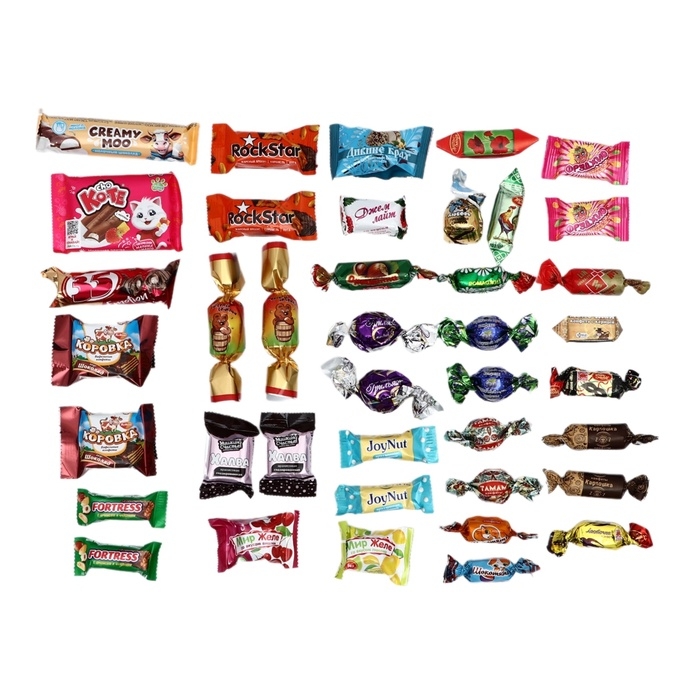 Внутри вы найдете разнообразные конфеты, каждое из которых дарит уникальный вкус и текстуру. Набор включает в себя любимые сладости, которые порадуют даже самых искушенных гурманов. Эти конфеты идеально подойдут как для угощения гостей, так и для того, чтобы порадовать себя любимыми десертами.