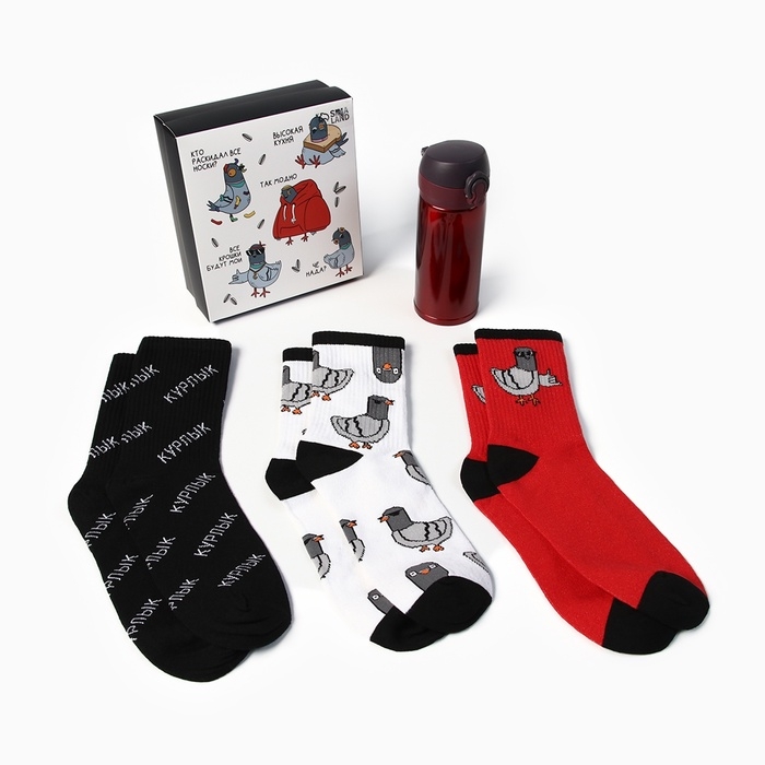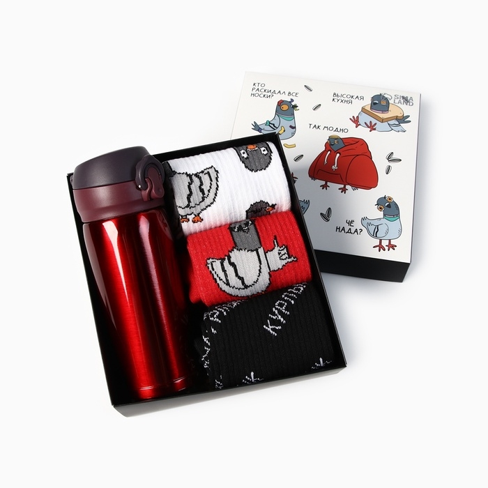Подарочный набор термос и носки 3 пары KAFTAN "Голубь", р. 41-44 (27-29 см)