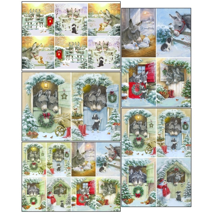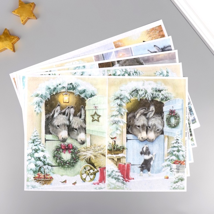Набор декупажных карт 5 шт «Зимние ослики», плотность 45 гр/м2, формат А4
