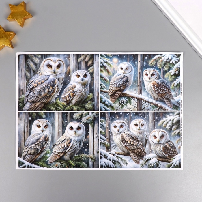Декупажная карта "Совы", плотность 45 г/м2, формат А4