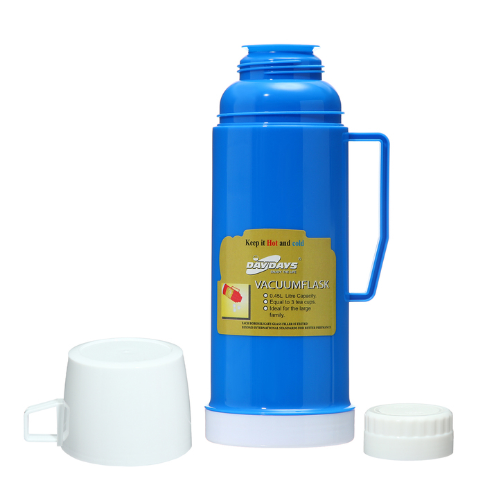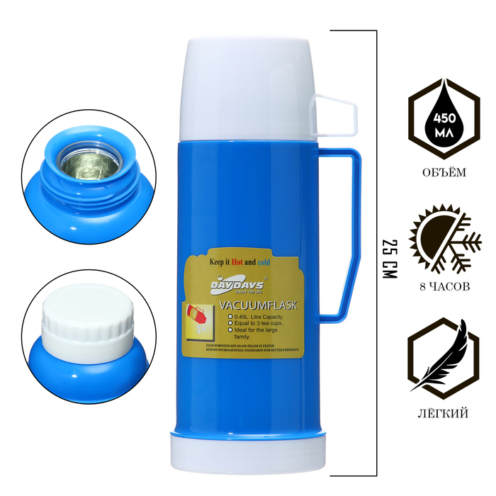 Термос 450 мл, со стеклянной колбой, 9 х 25 см, синий