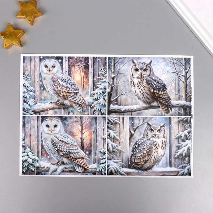 Декупажная карта "Совушки", плотность 45 г/м2, формат А4
