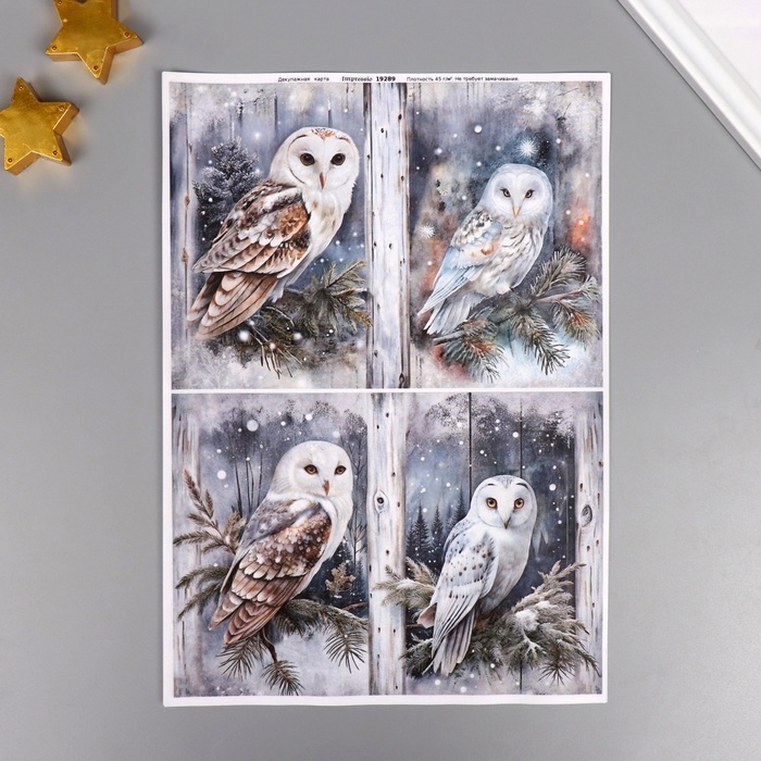 Декупажная карта "Совы на ветках", плотность 45 г/м2, формат А4