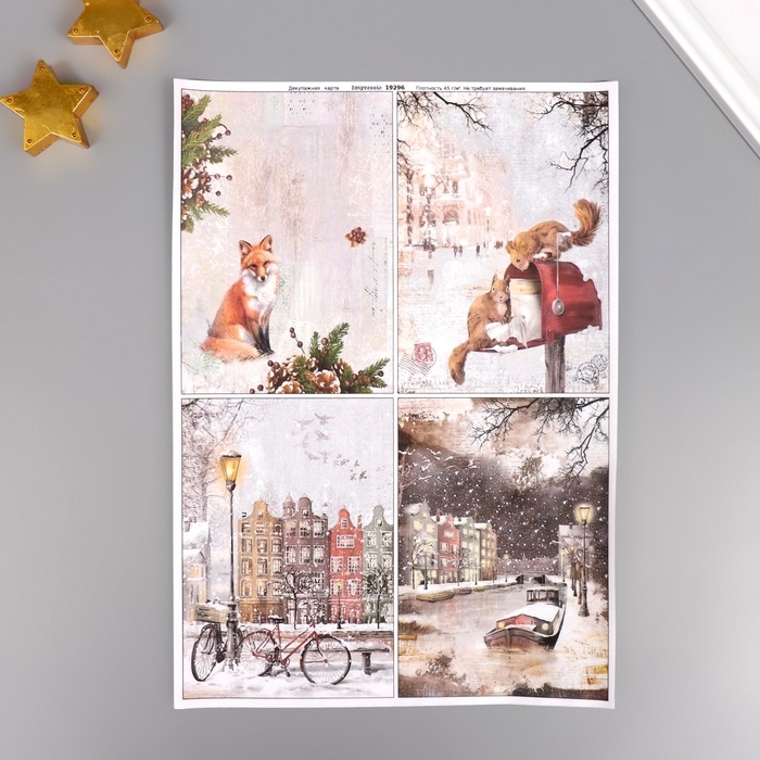 Декупажная карта "Белки, лиса", плотность 45 г/м2, формат А4