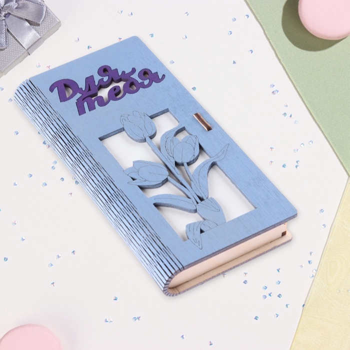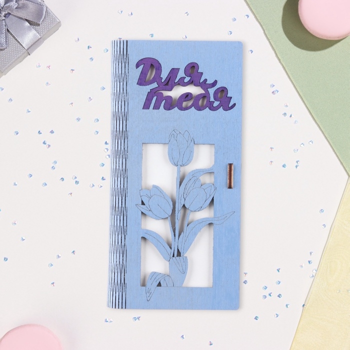 Конверт деревянный "Для тебя!" сиреневый фон, 8,3 х 17 см