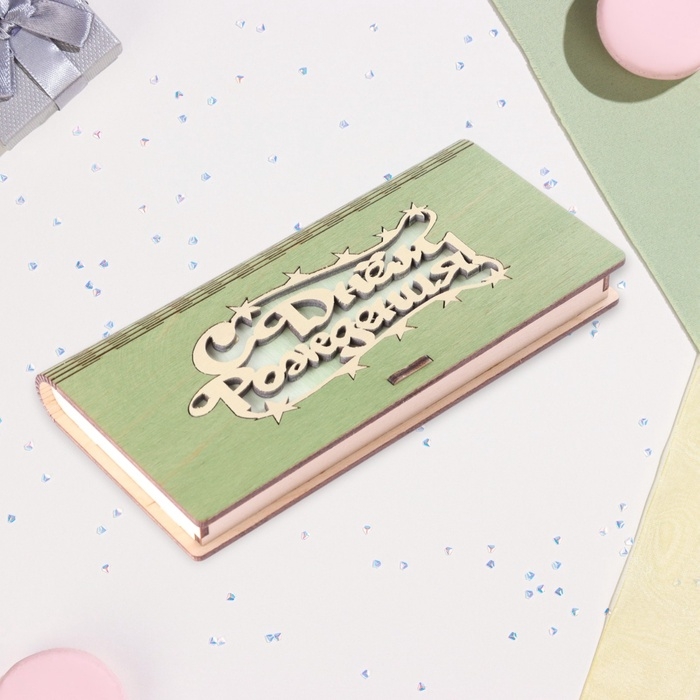 Конверт деревянный «С Днём Рождения!» зелёный фон, 8,3×17 см