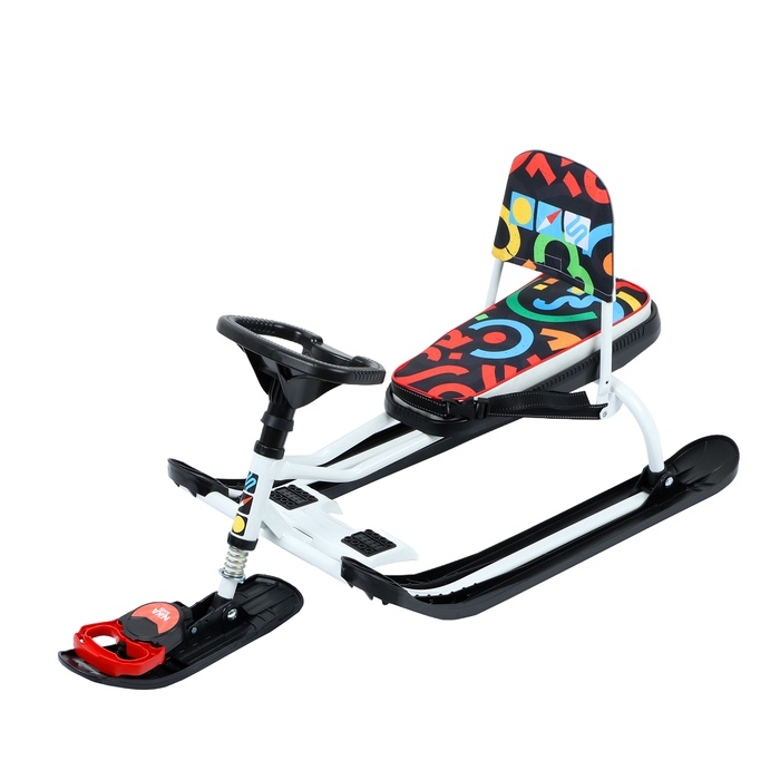 Снегокат предназначен для перевозки детей по плотному снегу или льду, а также для катания с горок. Имеет сварную конструкцию из стальных труб, пластиковых элементов и мягкое сиденье. Снегокат оборудован буксировочным тросом с автоматической намоткой и двухточечным ремнём безопасности. Усиленный тормоз эффективен на обледенелой поверхности и высокой скорости. В комплект входит набор наклеек на снегокат.