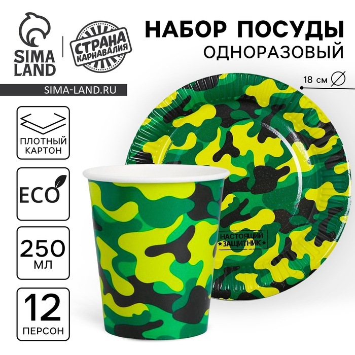 Набор посуды одноразовый «Военный», 12 стаканов, 12 тарелок