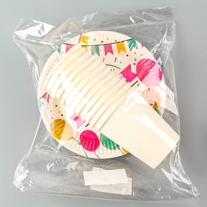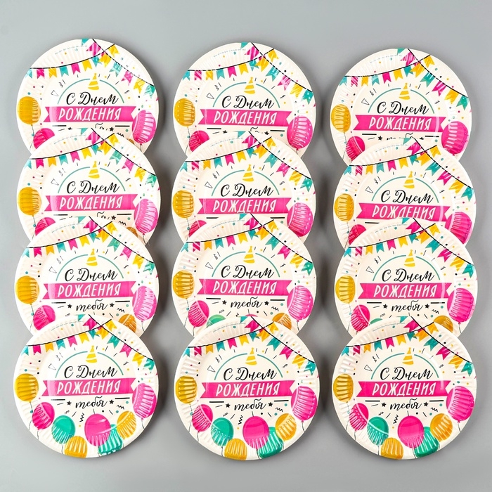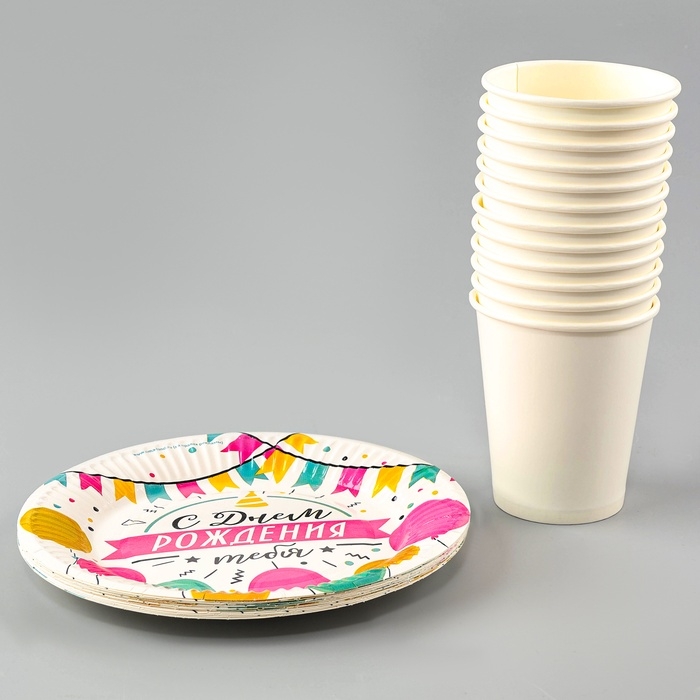 Набор посуды одноразовый «С днём рождения», 12 стаканов, 12 тарелок