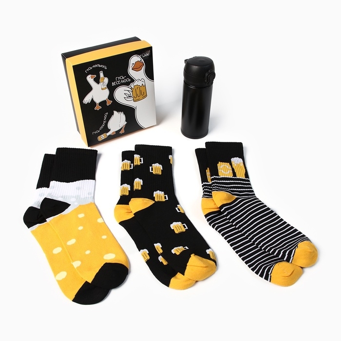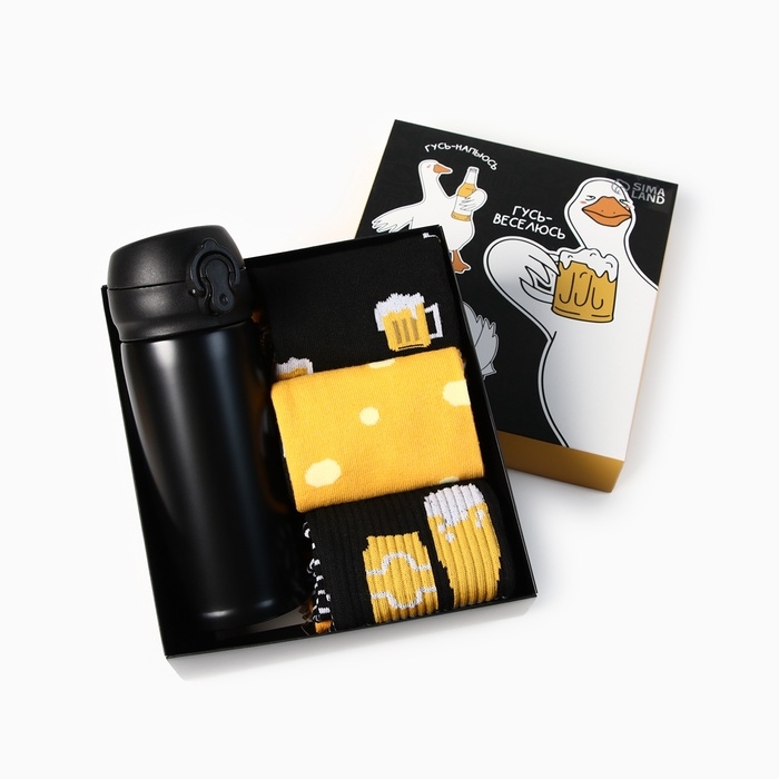 Подарочный набор термос и носки 3 пары KAFTAN "Гусь", р. 41-44 (27-29 см)