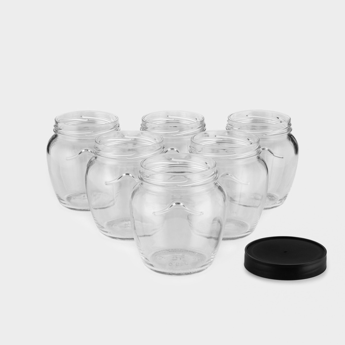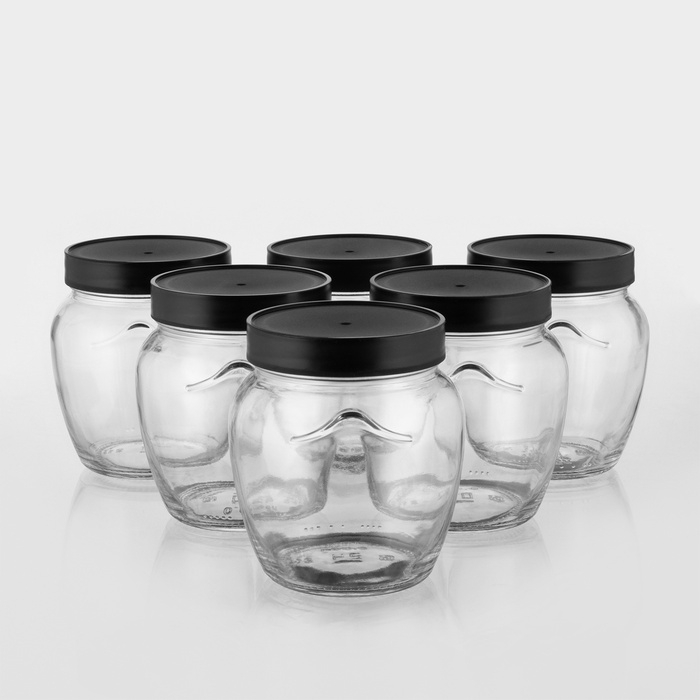 Набор стеклянных банок с чёрной полимерной крышкой, ТО-82 мм, 550 мл, 6 шт.