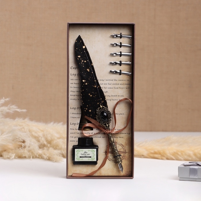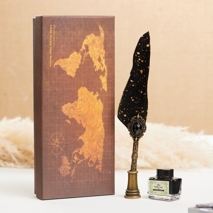 Набор подарочный 3в1 "Артефакт": перьевая ручка на подставке, чернила, наконечники, черный