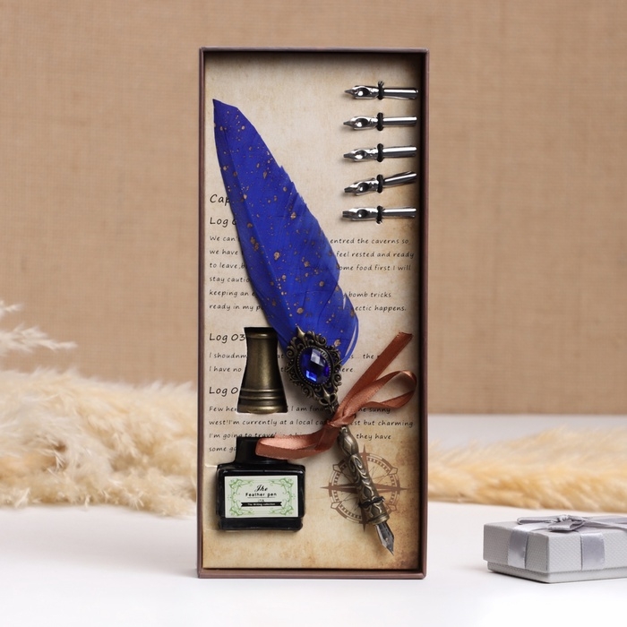 Набор подарочный 3в1 "Артефакт": перьевая ручка, чернила, наконечники, синий