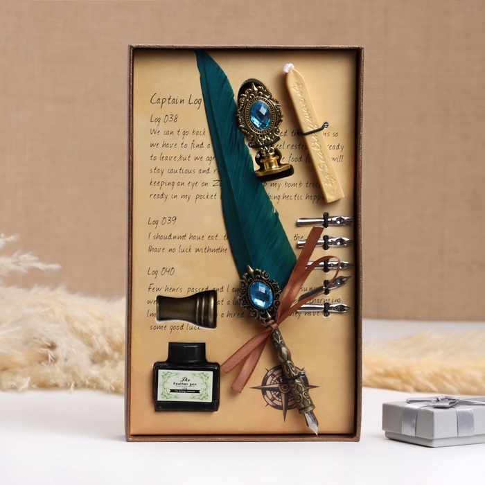 Набор подарочный 5в1 "Реликвия": перьевая ручка бирюза, чернила, наконечники, печать, воск