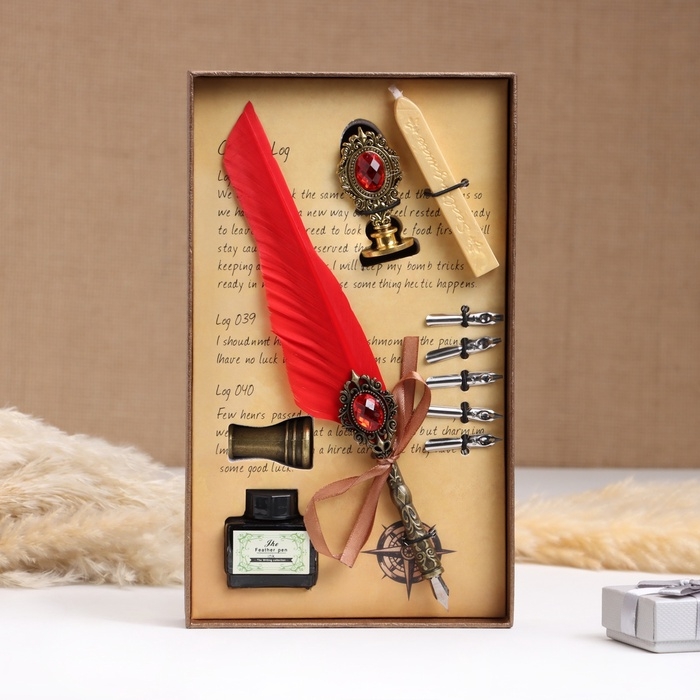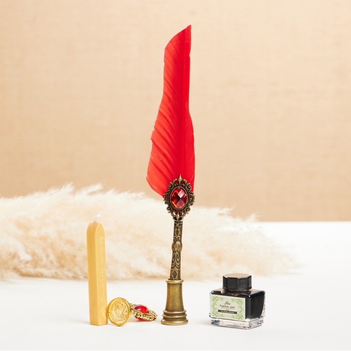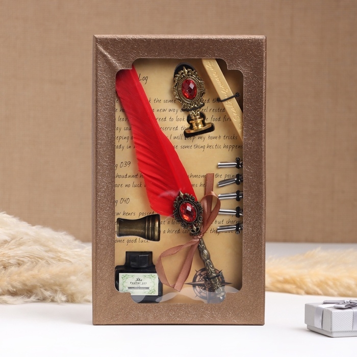 Набор подарочный 5в1 "Реликвия": перьевая ручка красная, чернила, наконечники, печать, воск