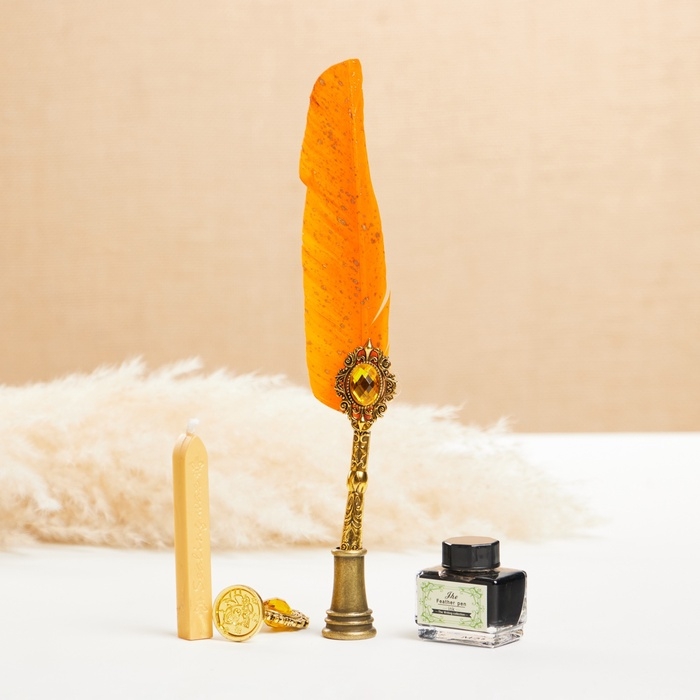 Набор подарочный 5в1 "Реликвия": перьевая ручка оранжевая, чернила, печать, воск