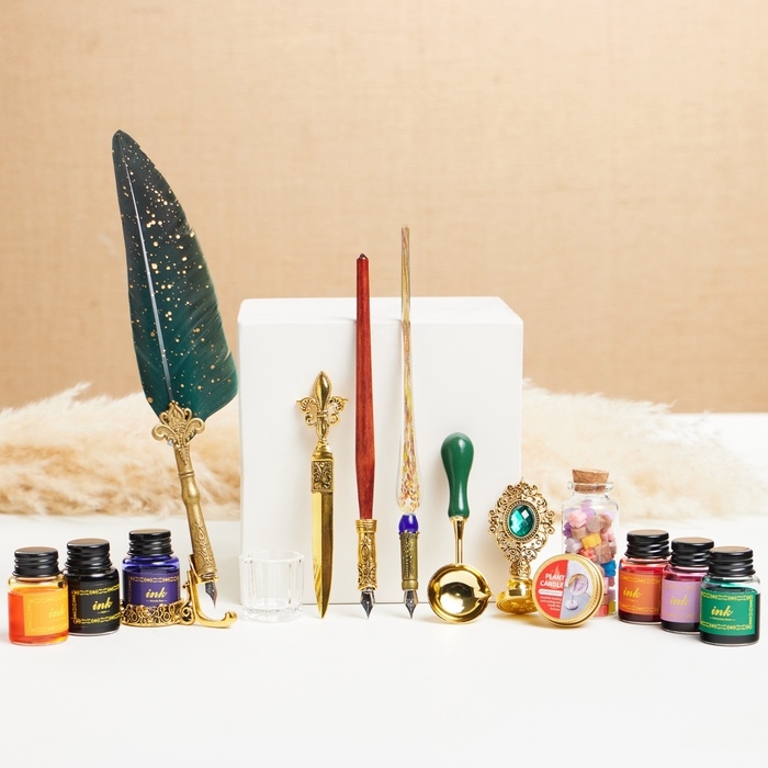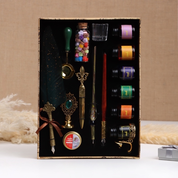 Набор подарочный 14в1 "Зачарованный": 3 перьевые ручки, чернила 6 цветов, печать, воск, нож