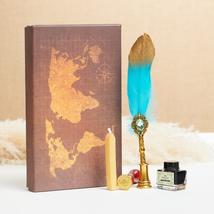 Набор подарочный 5в1 "Силенция": перьевая ручка зеленая с золотом, чернила, печать, воск