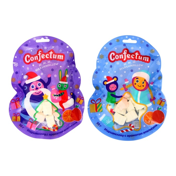 Маршмеллоу Confectum Дед Мороз и Снегурочка елки и звезды со вкусом апельсина 50 г