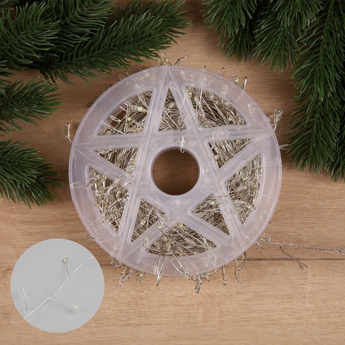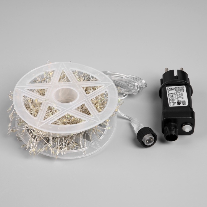 Гирлянда «Мишура» 20 м роса, IP44, серебристая нить, 600 LED, 8 режимов, свечение мульти, 18 В