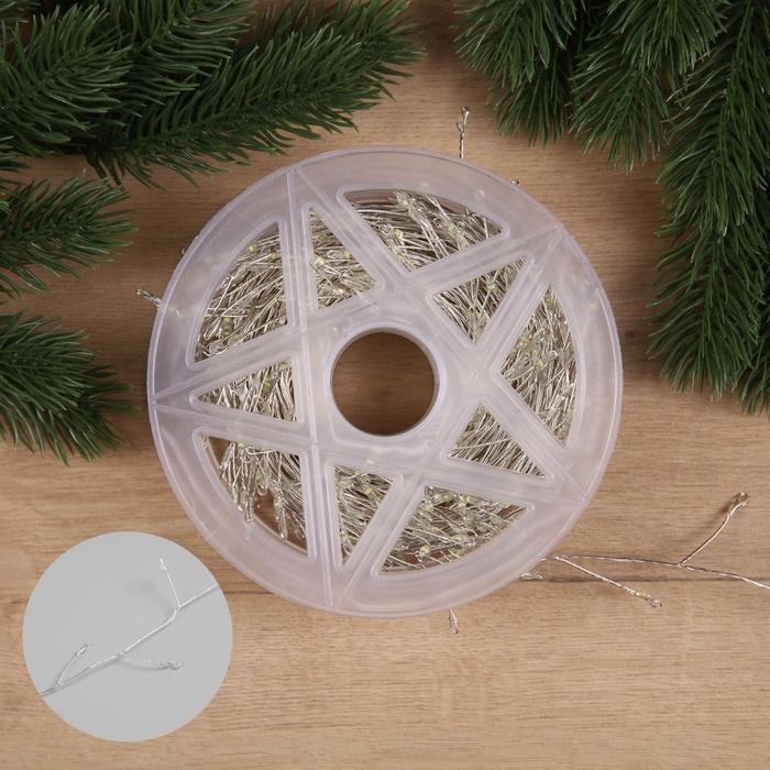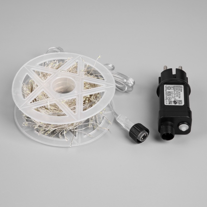 Гирлянда «Мишура» 20 м роса, IP44, серебристая нить, 600 LED, 8 режимов, свечение белое, 18 В