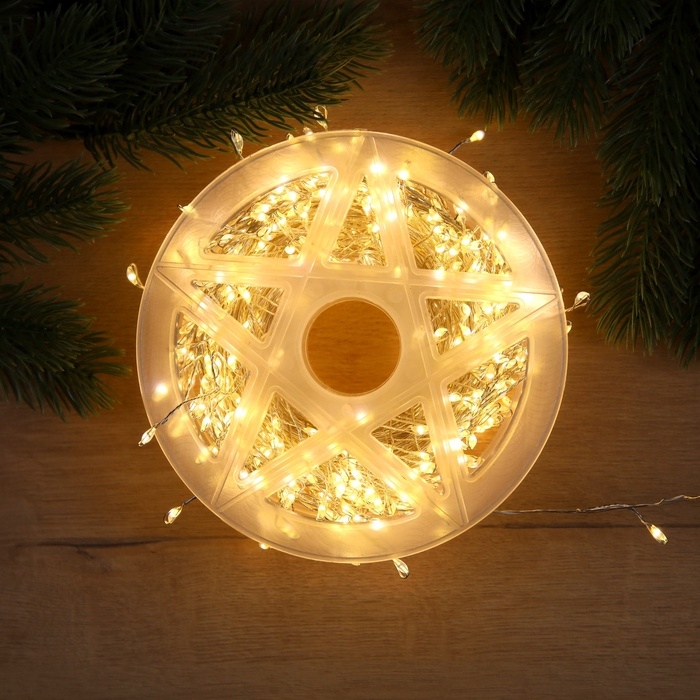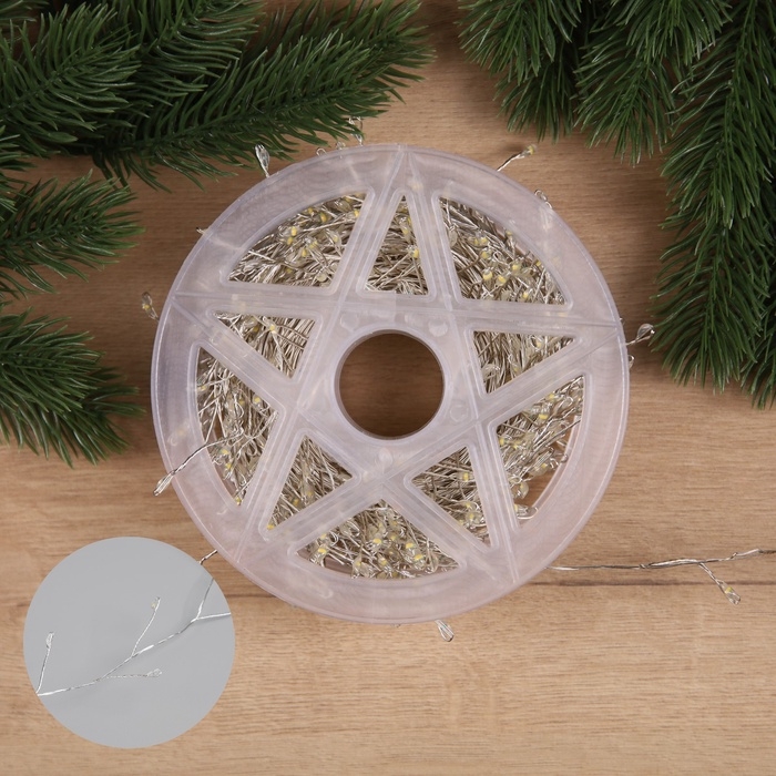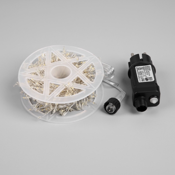 Гирлянда «Мишура» 20 м роса, IP44, серебристая нить, 600 LED, 8 режимов, свечение тёплое белое, 18 В