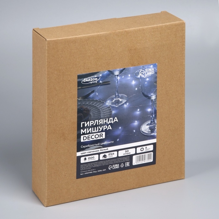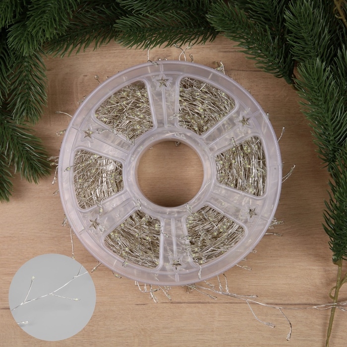 Гирлянда «Мишура» 50 м роса, IP44, серебристая нить, 1500 LED, 8 режимов, свечение белое, 36 В