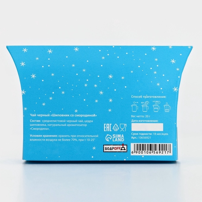 Новогодний подарочный чай черный "С Новым годом", со вкусом шиповника со смородиной, 20 г