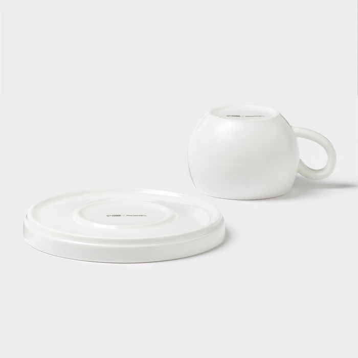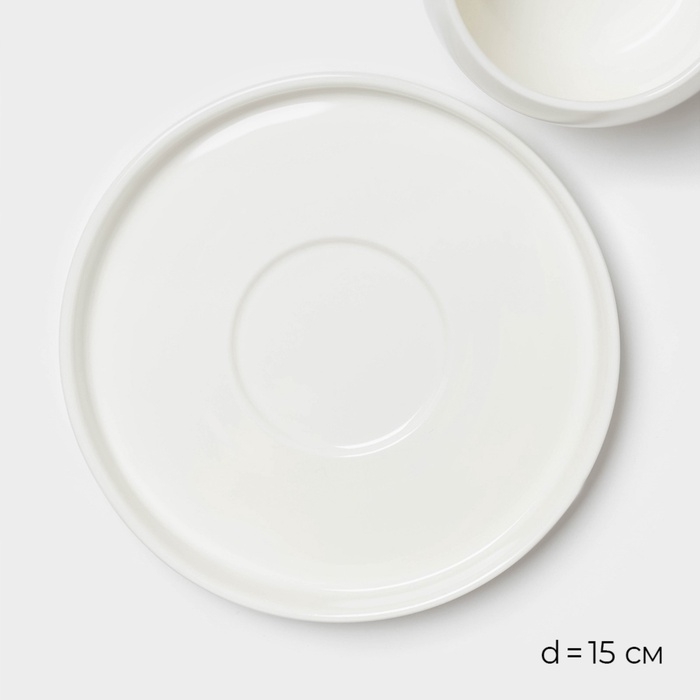 Чайная пара фарфоровая Magistro «Бланш», 2 предмета: чашка 250 мл, блюдце d=15,5 см, цвет белый