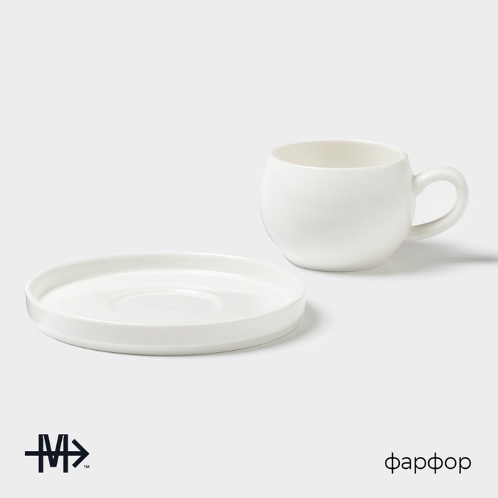 Чайная пара Magistro OliveQueen, 220 мл, 15×15 см, фарфор, белая