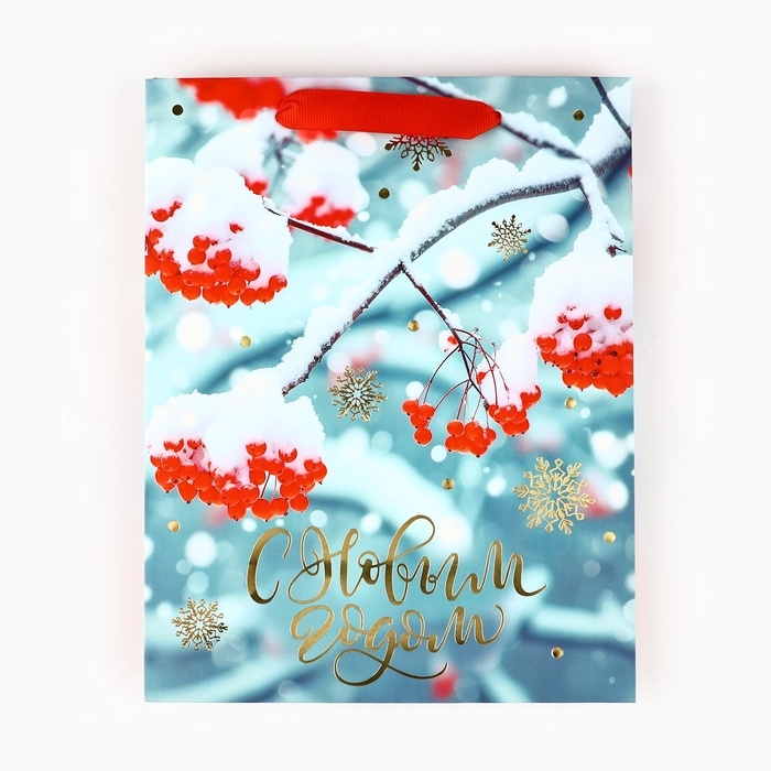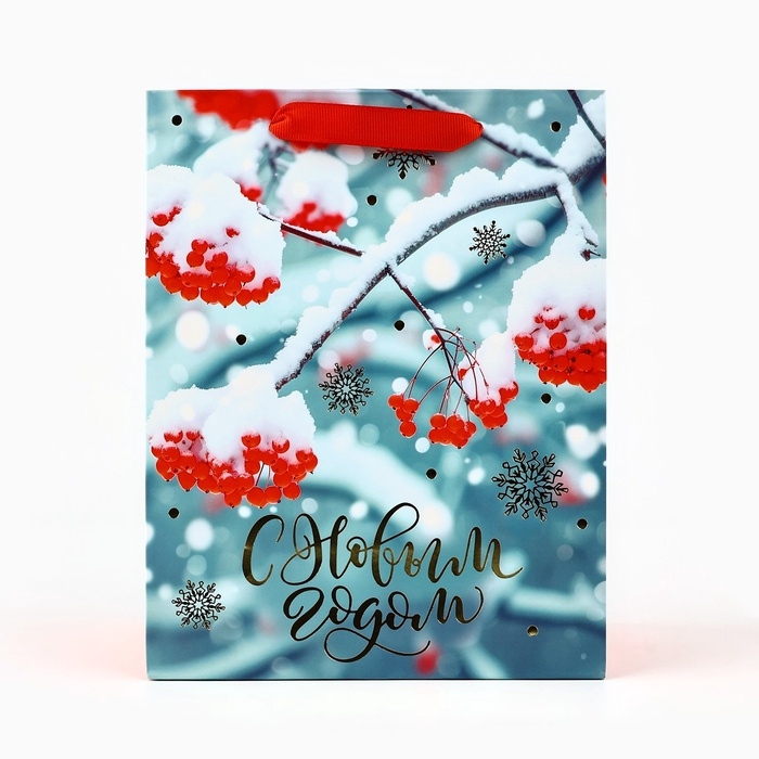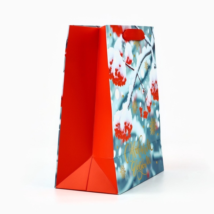 Пакет подарочный новогодний ламинированный «Рябина», MS 23 x 18 х 10 см