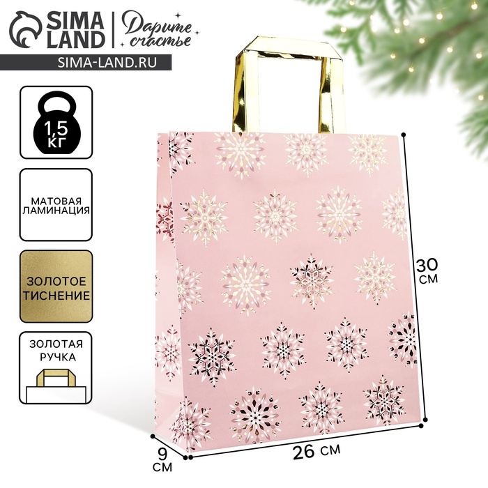 Пакет подарочный новогодний ламинированный «Яркий Новый год», M 30 х 26 х 9 см