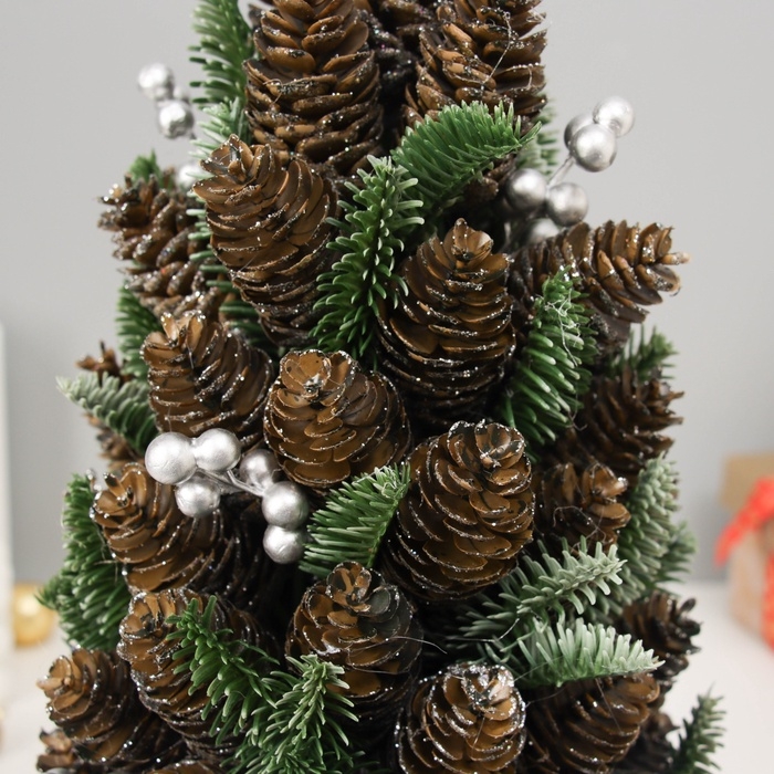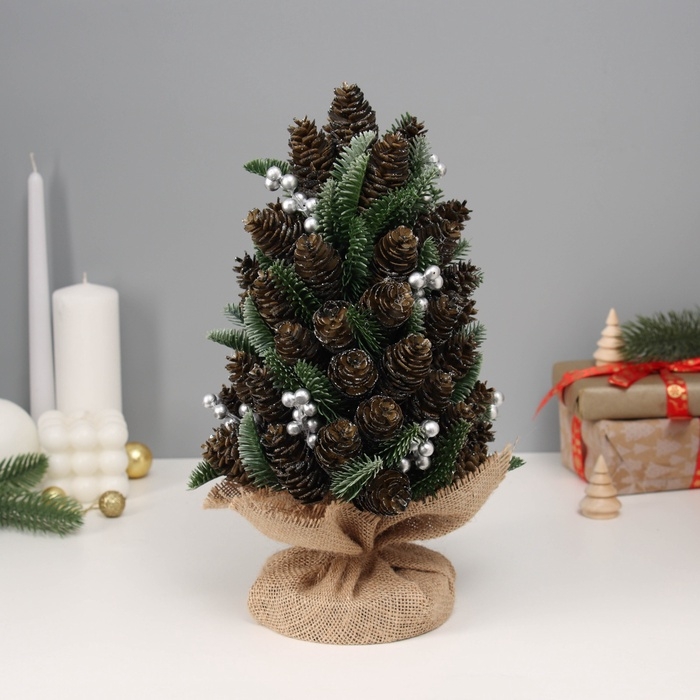 Искусственная ёлка с шишками «Зимнее волшебство» настольная, в мешочке, 30х16 см