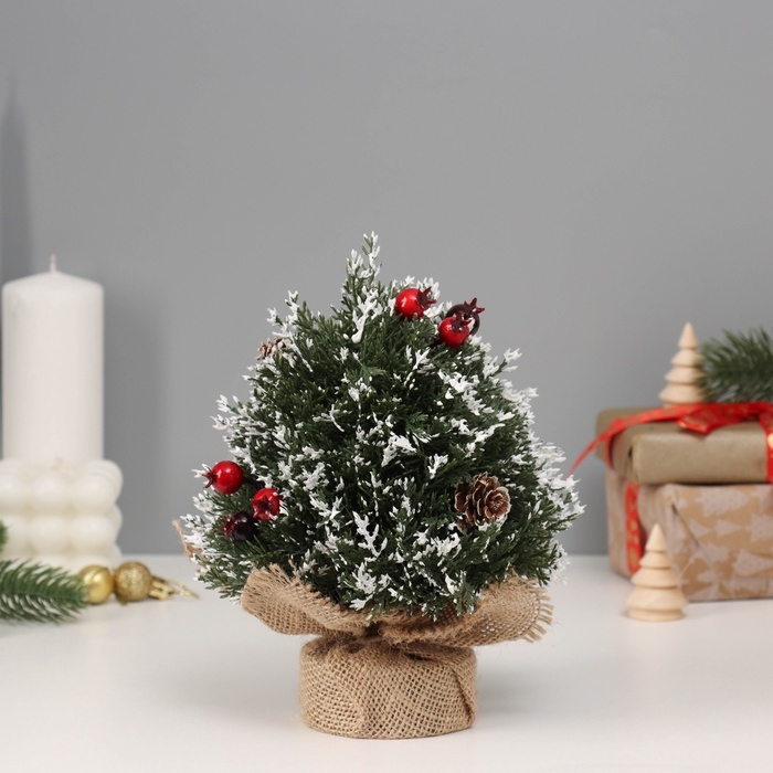Искусственная ёлка настольная «Зимнее волшебство. Ягодки», в мешочке, 21х13 см